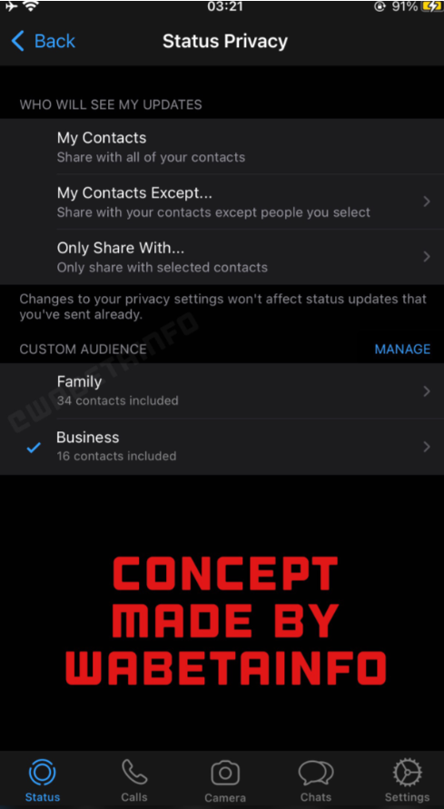 Elenco personalizzato per gli aggiornamenti di stato WhatsApp? Ecco il concept